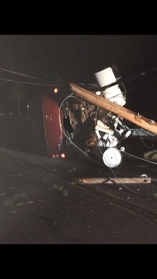 The crash happened at approximately 2:00 a.m. and resulted in the pole breaking and causing wires to fall down in the roadway.