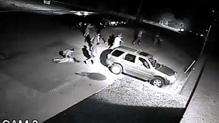 That video shows one woman struck so hard by a punch that she is knocked unconscious. It ends with a man plowing into a group of people speeding out of the parking lot.