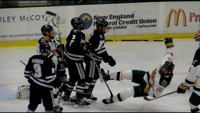 The Friars defense took over the third period, limiting the host Catamounts to just eight shots on goal in the final frame. Tensions mounted late in the game as the teams combined for 37 penalty minutes in the final 1:40 of play.