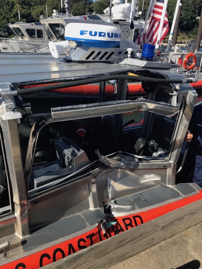 The Coast Guard said two 29-foot tactical boats were involved in “maneuvers and training” Wednesday afternoon off Falmouth when they collided in Buzzards Bay.