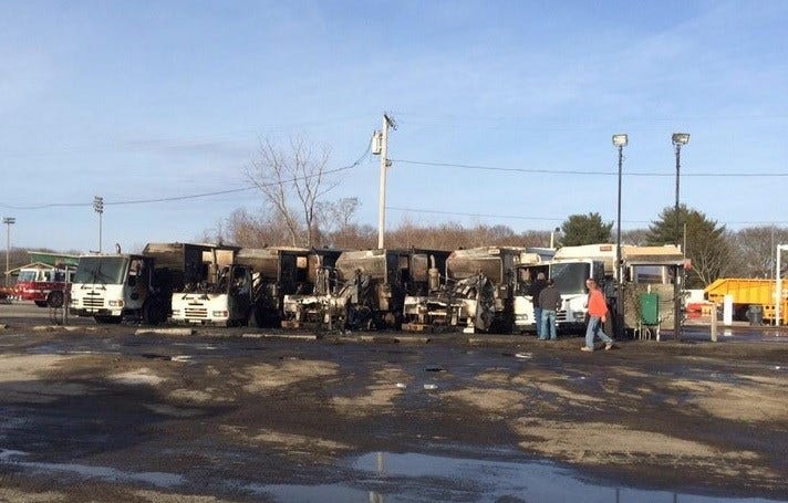 5 garbage trucks damaged by fire in Warwick
