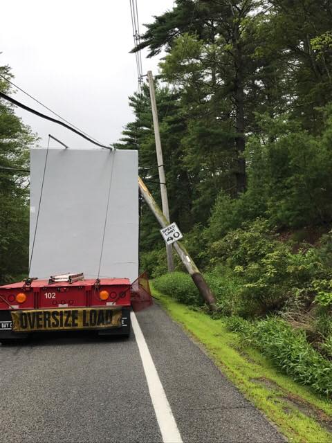 Coventry Police announced on their Facebook page Saturday morning that a truck with an oversized load took down wires and utility poles on between Zekes Bridge and Fish Hill Road Saturday morning.
