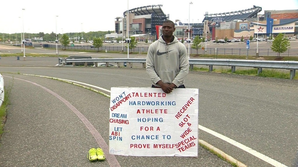So far, a couple of players have stopped to talk to him, including Malcolm Butler, who posted his picture on Facebook with a caption saying “#NeverGiveUP”