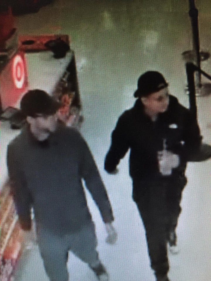The suspects can be seen on surveillance using a stolen credit card last month at the Target in Warwick.