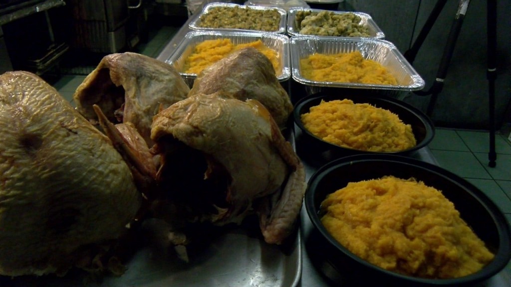 This thanksgiving meal will feed more than 130 people. Thomas pays for it out of his own pocket.