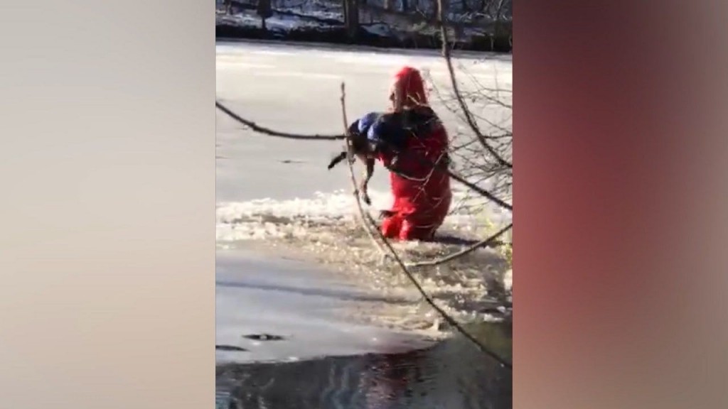 BLACKSTONE, Mass. (WLNE) — A local firefighter is being recognized after saving a dog stranded on an icy pond. It was that firefighter’s first water rescue and he tells ABC 6 News he never expected it would get this much attention.