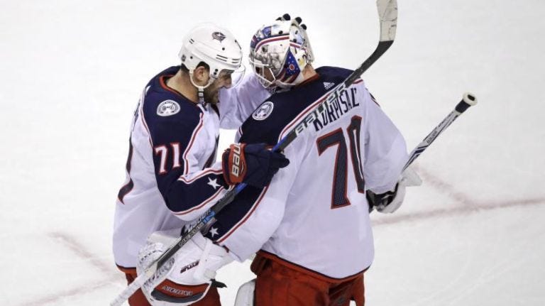 “It just looked like as a whole group we didn’t seem to have our legs,” Columbus coach John Tortorella said. “The turnovers hurt us, we turned the puck over quite a bit. But give them credit, they just ended up finding a way.”