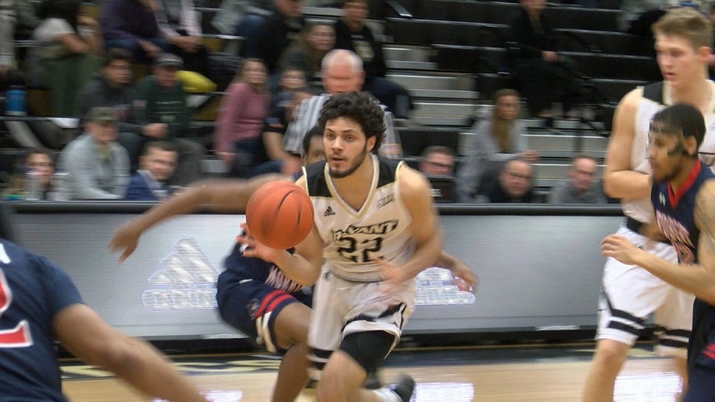 SMITHFIELD, R.I. – Junior Adam Grant (Franklin, Va.) scored a team-high 17 points and senior Taylor McHugh (Centreville, Va.)added a career high-tying 12, but the Bryant University men’s basketball team was held off by Robert Morris, 79-65, Saturday at the Chace Athletic Center.