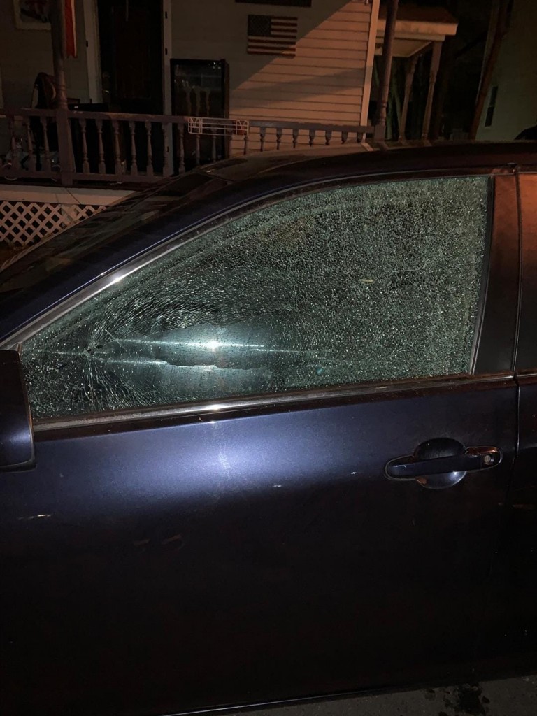 “We had to put tape on the window!” Jasmine Berrios said about her van.