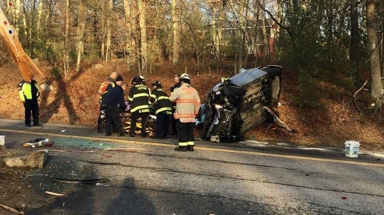 Car crashed into pole in Wrentham, 1 airlifted to hospital