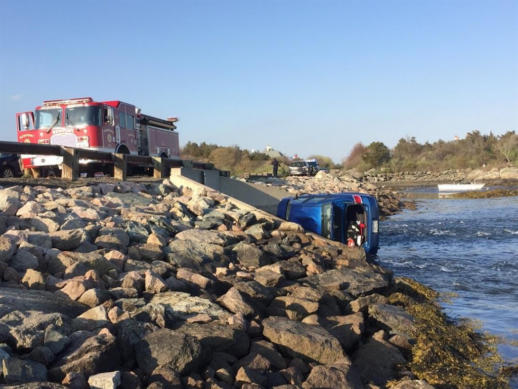 NEWPORT, R.I. — A car rolled over on the Green Bridge Tuesday evening on Ocean Drive and ended up in the water.