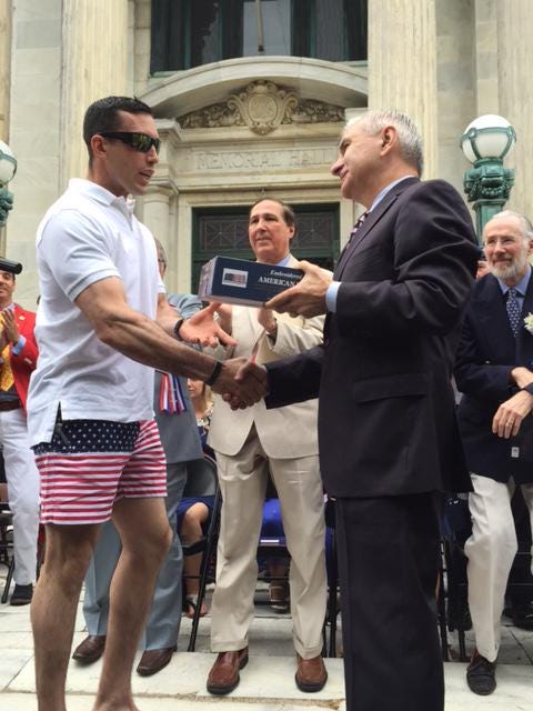 Sgt. McKenna was recognized at last year’s Bristol Fourth of July Parade just weeks before he was killed in Afghanistan. It was the last time many Rhode Islanders saw the decorated war hero and one thing caught everyone’s attention that day: his patriotic shorts.
