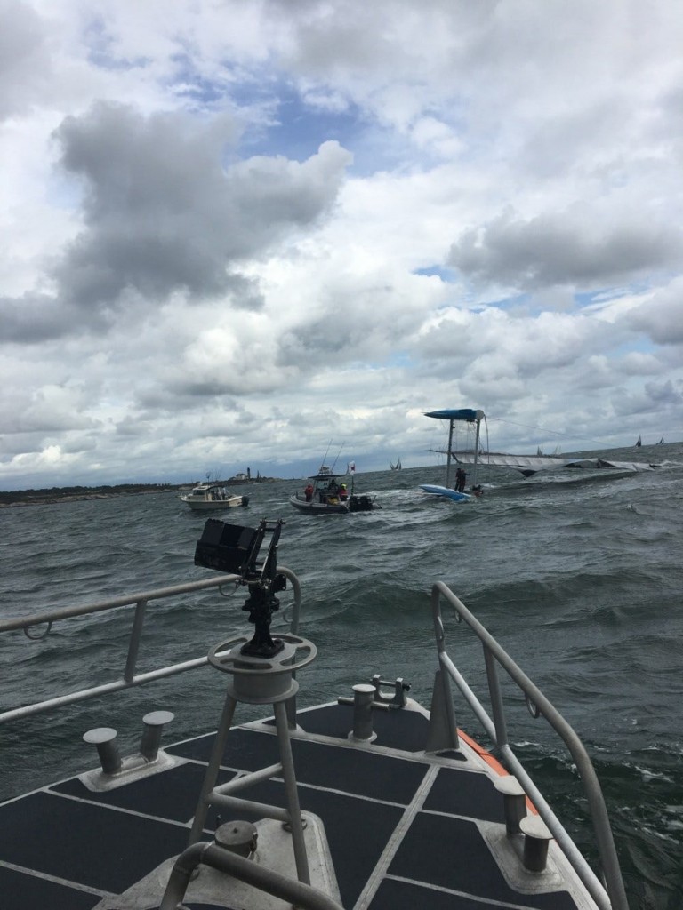 JAMESTOWN, R.I. (WLNE) – The Coast Guard rescued five people after their catamaran capsized during a sailing regatta off Beavertail Lighthouse Saturday.