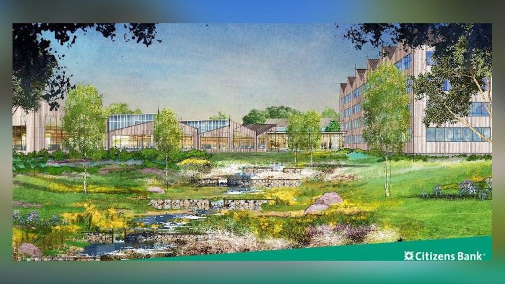 Citizens Bank Chairman and CEO Bruce Van Saun explain the campus’ features. "There’s three large buildings for office space, two for office workers, one for a call center and then there’s a big amenity center with the cafeteria the fitness center and outdoor space."