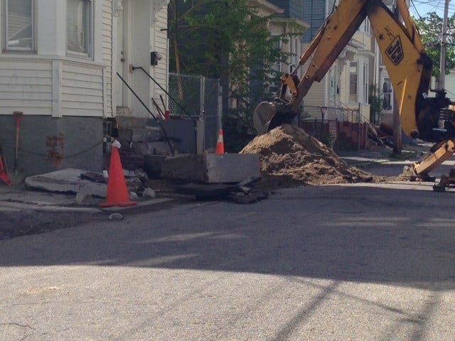 Providence Fire officials say the man’s co-workers help stabilize the rock until they arrived to remove it.