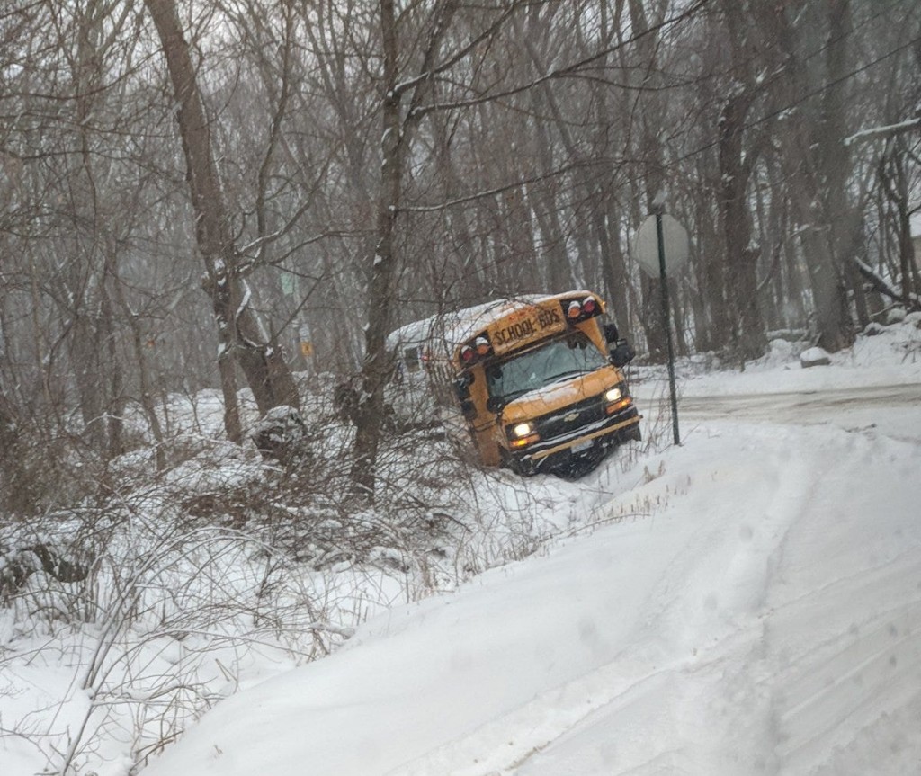 Cranston police told ABC6 News they responded to the scene of Wilbur Avenue at about 8:30 a.m. and found that a disabled school bus sled and got stuck in the snow.