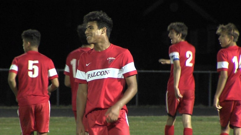 The Cranston West boys soccer team scoring two goals in the second half of Thursday’s game against Mt. Hope to beat the Huskies, 2-0. Wrenano Honeyghan scoring both goals for the Falcons.