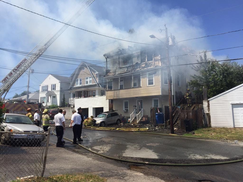 Crews in Cranston are on scene battling on Florida Avenue Monday.