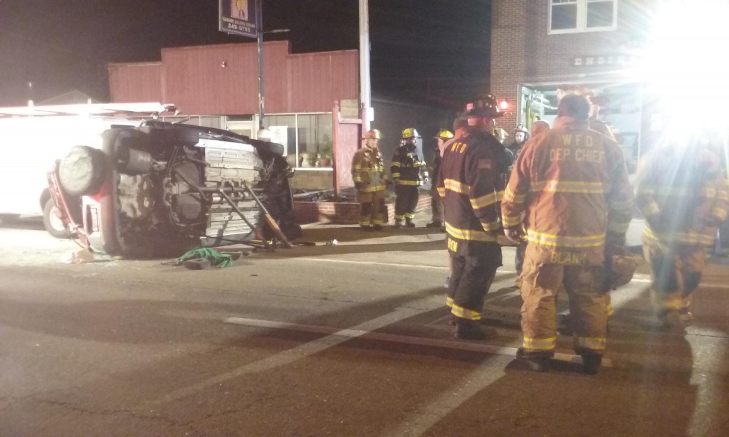This impact caused one of the vehicles to rollover, trapping three people inside.