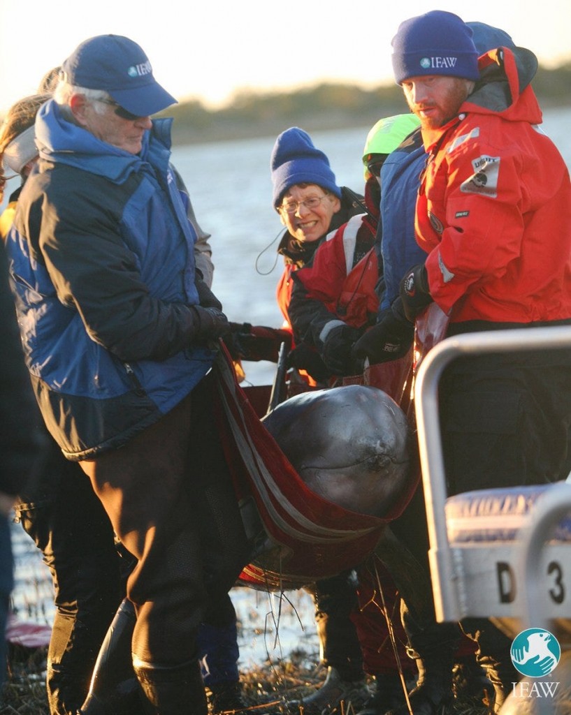 The International Fund for Animal Welfare (IFAW) was in Wellfleet Harbor on Sunday trying to get the group of dolphins back into deep water.