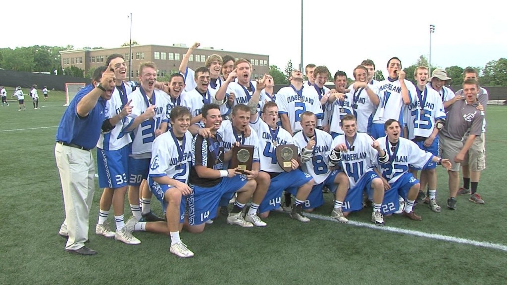The Cumberland Clippers celebrate a championship after beating Westerly 12 to 10 in the Division II title game at Brown. Jake Salisbury scored five goals and was named the Most Valuable Player.