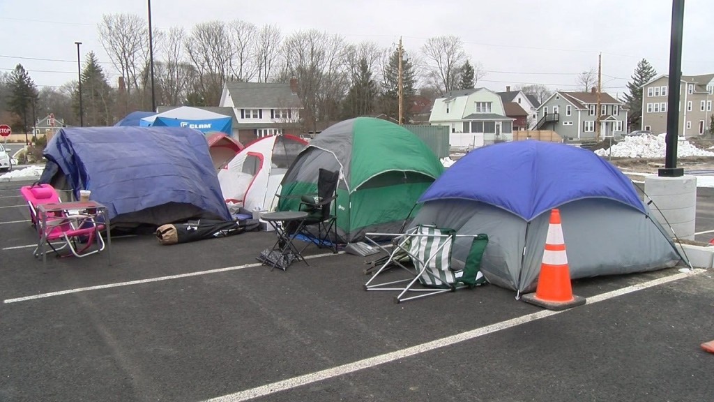 ATTLEBORO, MASS. (WLNE)— More than a dozen people are prepared to weather Wednesday’s nor’easter, in a tent, so they can win free food.