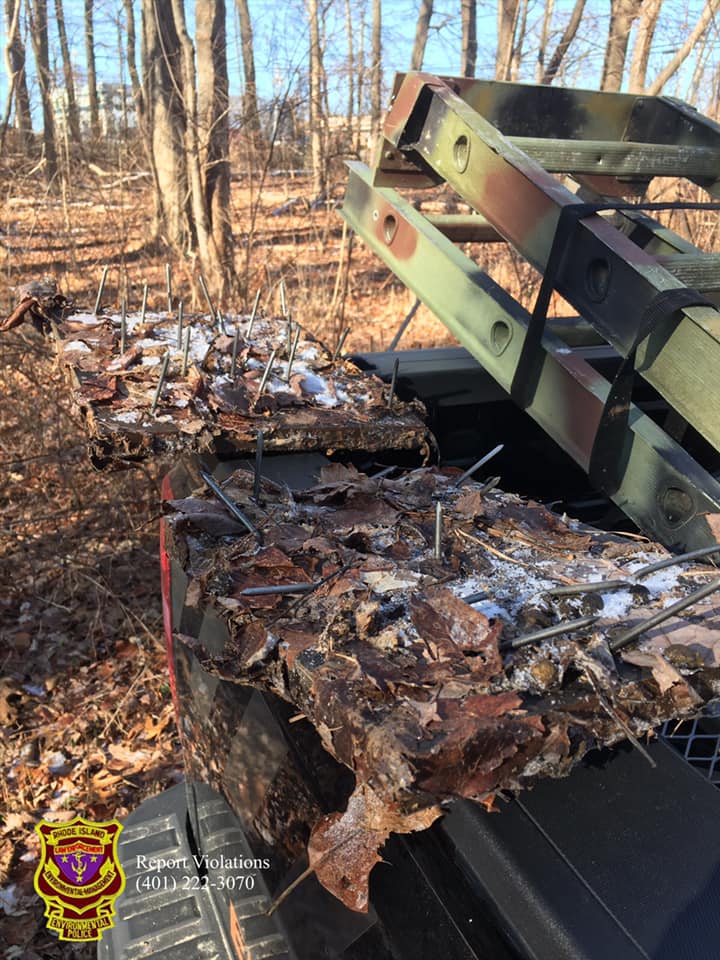 According to a post from the RI DEM, environmental police officers were working to remove illegal and baited tree stands from town property along Gooding Avenue.