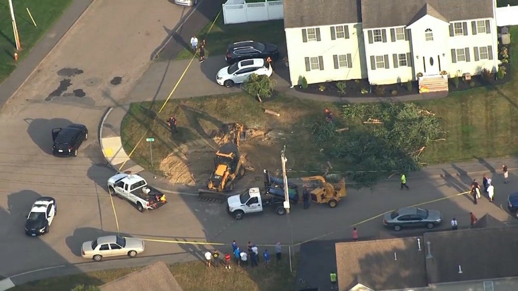 A bulldozer dug up a large tree and much of the grass and dirt near the corner of Ashleigh Terrace and Bryan Drive before filling it all back in.