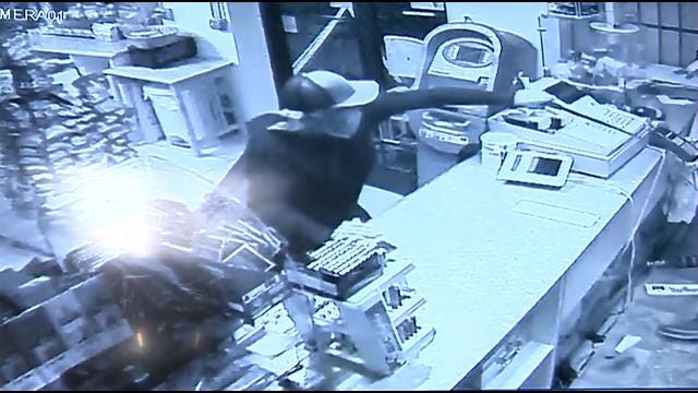 The robber dressed in black from head-to-toe and armed with an expandable metal baton did not take no for an answer.