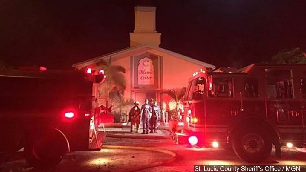 Maj. David Thompson of the St. Lucie County Sheriff’s Office told a news conference officials received a report around 12:30 a.m. Monday about a fire at the Islamic Center of Fort Pierce. Firefighters extinguished the fire.