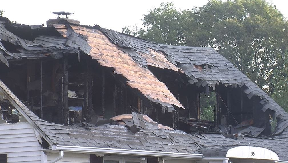 There was heavy damage to the second floor where much of the roof collapsed. The three people living inside were able to make it out safely.