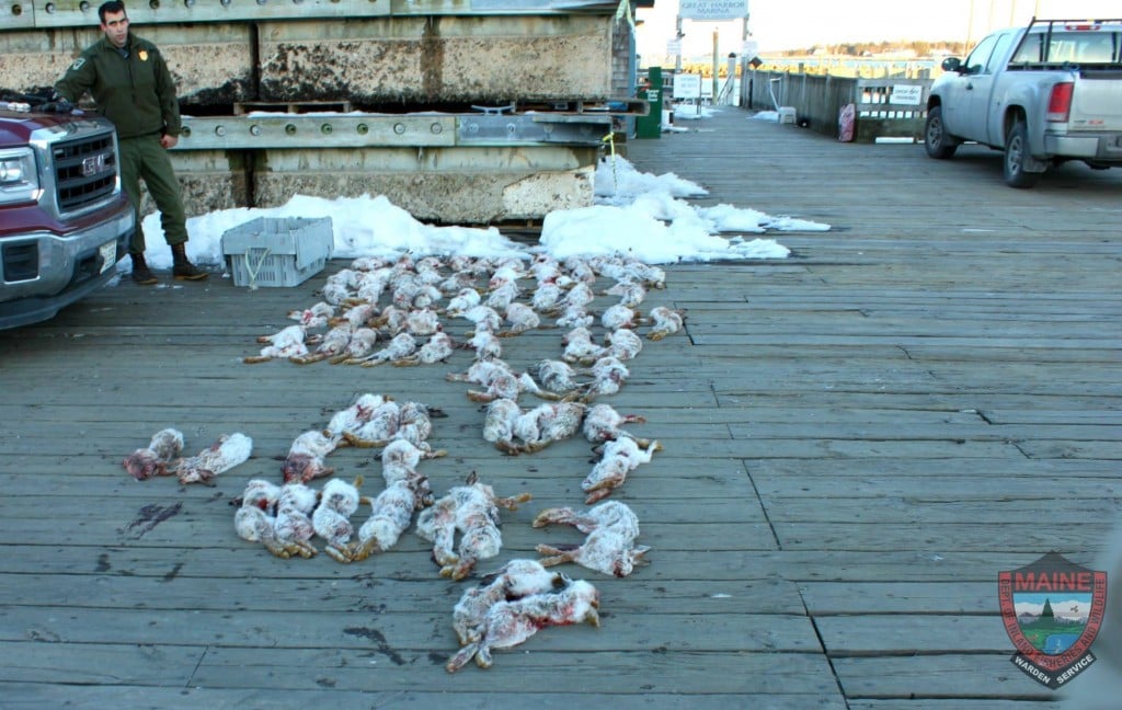 According to the Maine Department of Inland Fisheries & Wildlife, a group of hunters was found on Great Duck Island, an area owned by the Nature Conservatory, with the remains of 87 snowshoe hares.