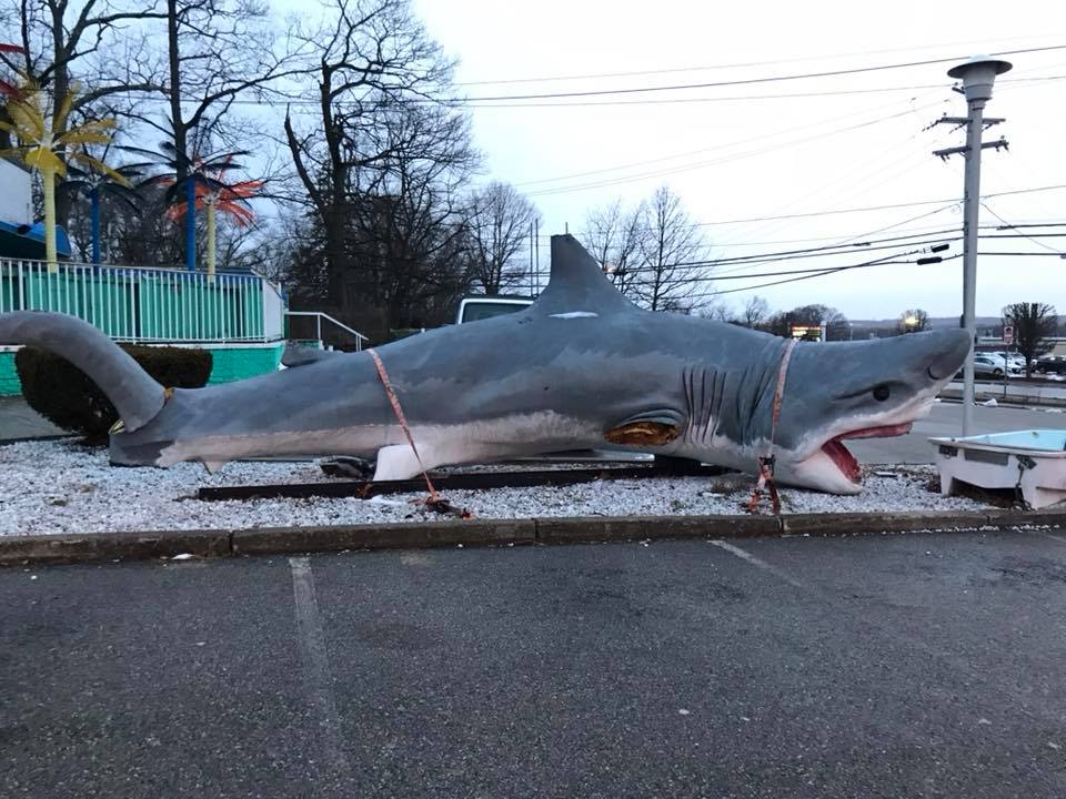 The shark statue that used to sit on top of the Mardi Gras Multi Club in Cranston was put up for sale on Facebook Marketplace Tuesday for $1,000.