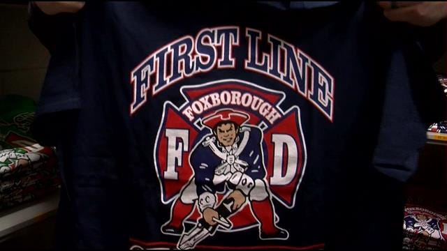 FOXBORO, MASS. — Firefighters in Foxboro are so confident the New England Patriots are going to win the Super Bowl that they are literally betting the shirts on their backs.