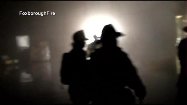 Foxboro firefighters responded to a warehouse fire Sunday. Once inside they came across a partial roof collapse in the same building.