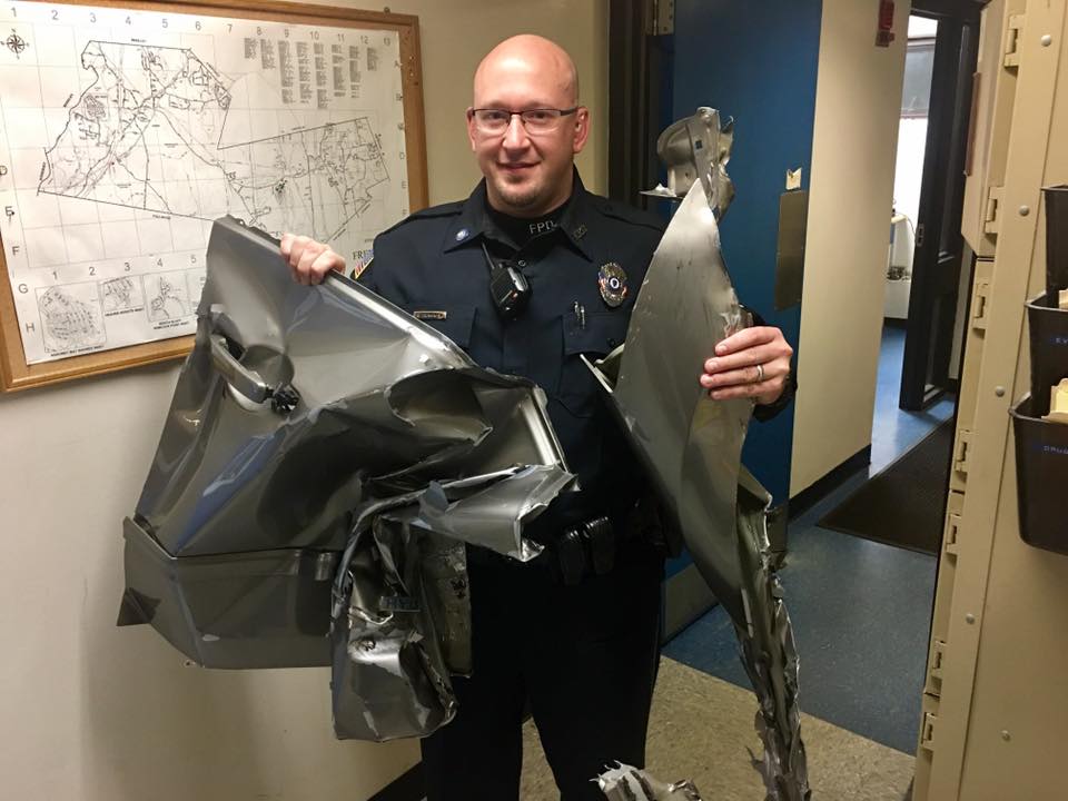 FREETOWN, M.A. – Freetown Police are trying to track down the driver of a car who side swiped a tractor trailer Tuesday and left behind their car door at the scene.