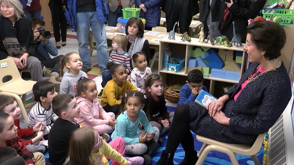 PROVIDENCE, R.I. – Governor Gina Raimondo read to public pre-Kindergarten students in Pawtucket while touting her proposal for universal pre-K.