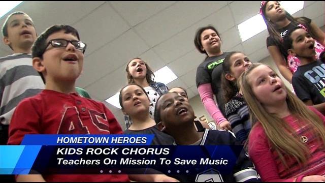 Taylor Temple and Nick Hurd know music and the arts are the first to go when school districts are looking to cut costs. So, these teachers are trying to change that. They’re tuning out the perception that music class is expendable and turning up their new idea: The Kids Rock Chorus.