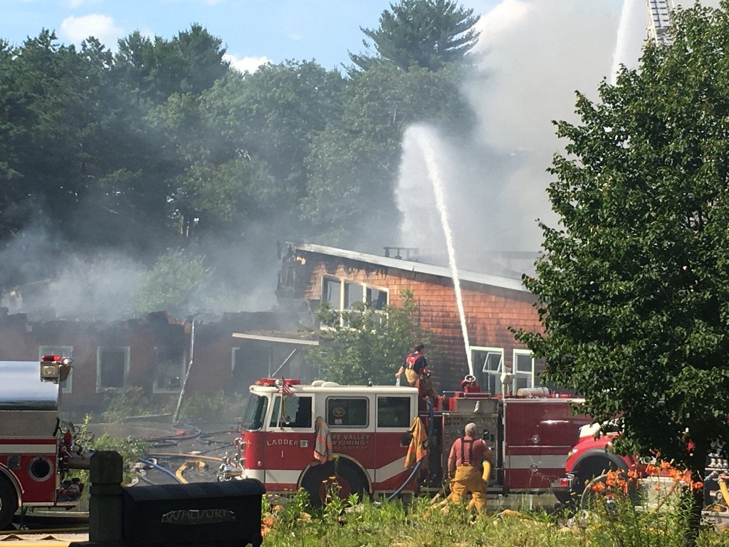 Twenty-two tankers were on scene helping to knock down the fire. A portion of Route 138 was closed for the day as the tankers made trips down the street to a nearby school to fill up their water tanks.
