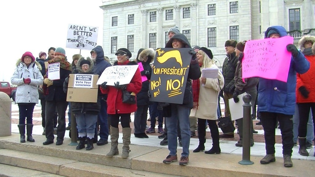 Hundreds of students in Providence joined a march to the state house in protest of the inauguration of President Donald Trump.