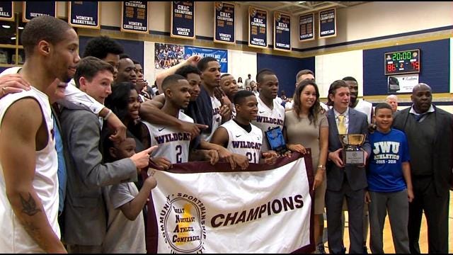 PROVIDENCE, RI. – One year ago, the Johnson & Wales University men’s basketball team watched the Albertus Magnus College squad celebrate a GNAC championship. Head coach Jamie Benton and the seven seniors on this year’s team vowed that would be them in 2016. The 14th-ranked Wildcats fulfilled that promise on Saturday as they defeated the Falcons, 86-75, to win the conference title.