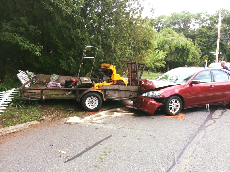 Authorities believe a landscape crew parked a truck and trailer on the shoulder of the lane with a reflective cone placed in the roadway behind the trailer. A 71-year-old Mansfield woman drove her red Toyota Camry through the cone and struck the trailer, sending it 35 feet down the road.