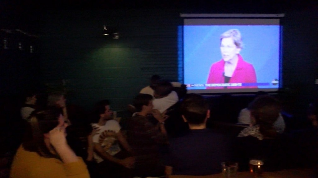 Some of the biggest topics of the night for the young crowd at the Rhode Island Young Dems and Women’s Caucus watch party at Riffraff bar and bookstore – immigration, student debt, and gun violence.