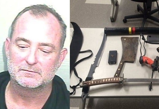 WRENTHAM, Mass. (AP) _ A Connecticut man police say had a meat cleaver, a stun gun and swords in his vehicle in an employee parking lot at Gillette Stadium has been held on $17,500 bail.