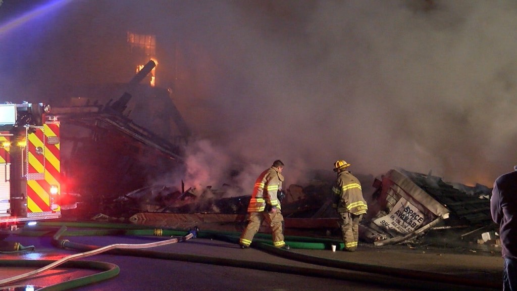 Fire officials say the blaze started around midnight and flare–ups continued until about 5’oclock Friday morning.