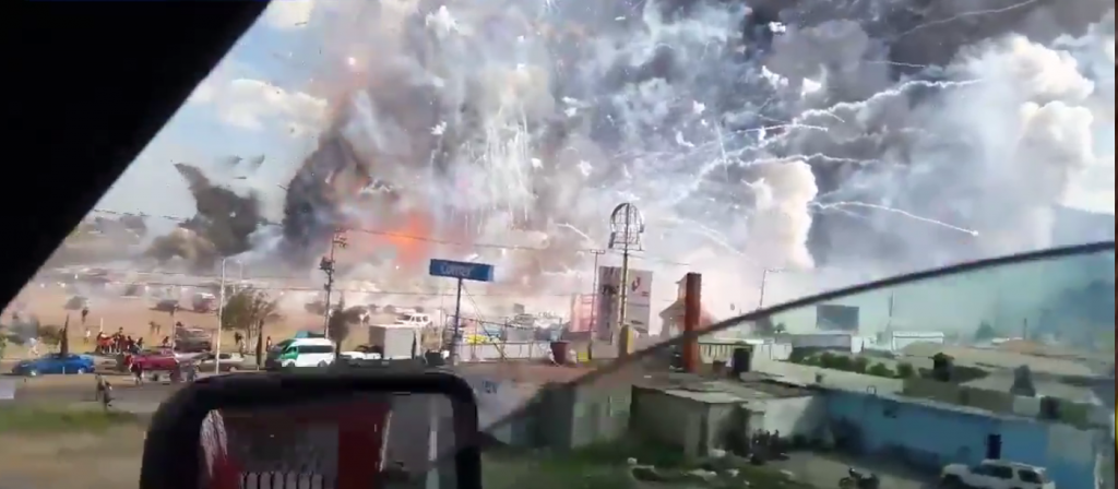 Dramatic video shows fireworks explosion at market in Tultepec, Mexico that injured 60 people, damaged several homes https://t.co/JFRNMAiRed pic.twitter.com/NjM2XLqtvL