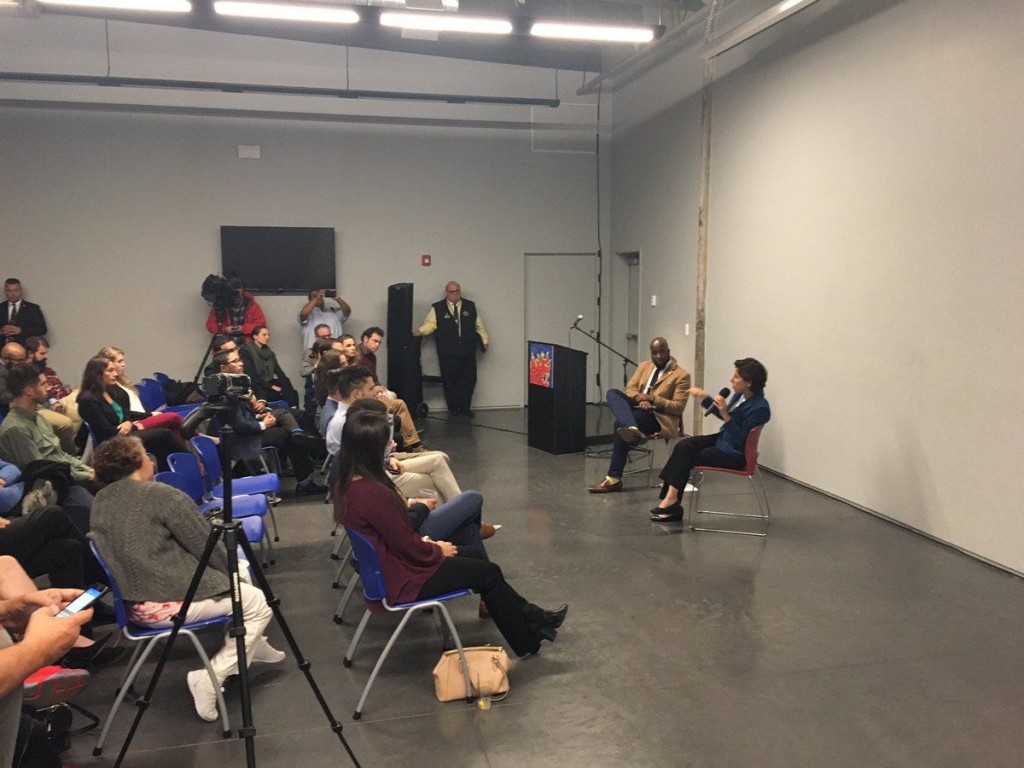 The group Millennial RI hosted the conversation with Governor Raimondo and local twenty- and thirty-somethings at the WaterFire Arts Center.
