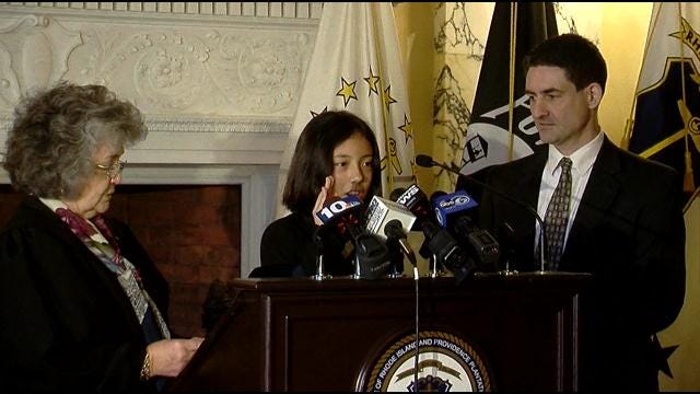 Thompson Middle School 5th grader Khatima Bulmer was officially sworn in as “Governor for a Day” by State Supreme Court Justice Maureen McKenna Goldberg at the State House.