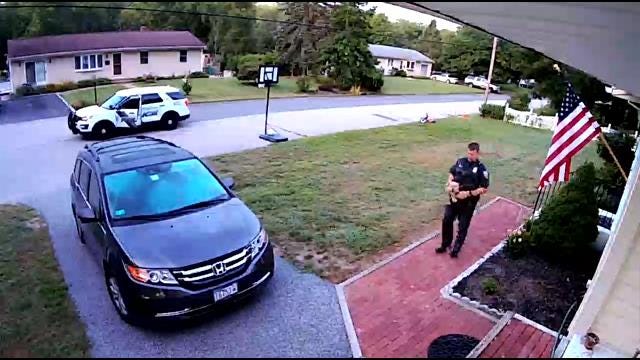 It turns out that their security camera caught a North Kingstown police officer placing Bubbles on their car.