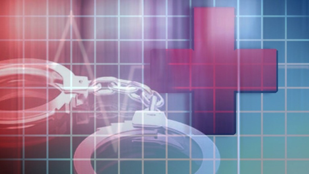 After a brief struggle with two other officers, the patient was restrained and escorted to the medical building for assessment.